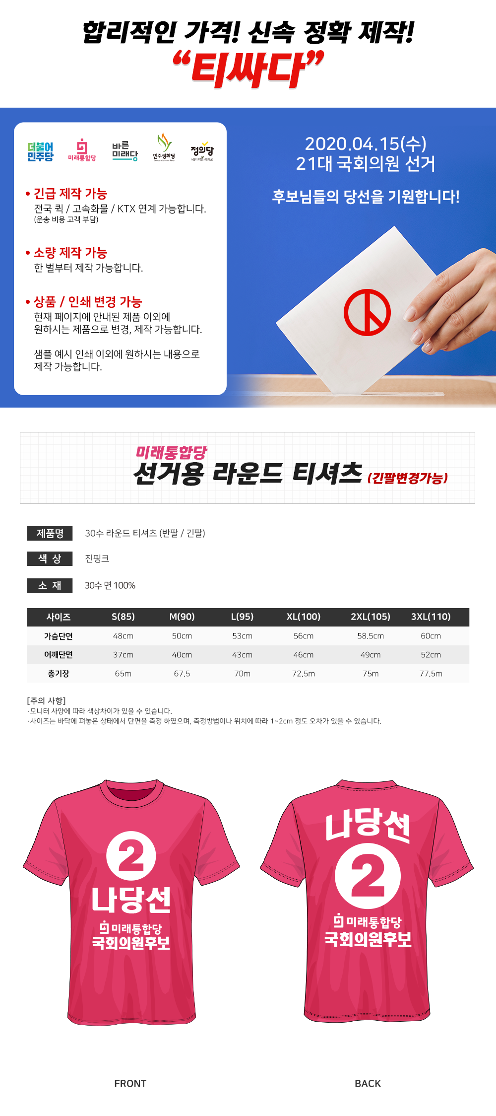 미래통합당 선거라운드티  [인쇄 포함 가격/문구수정 가능]